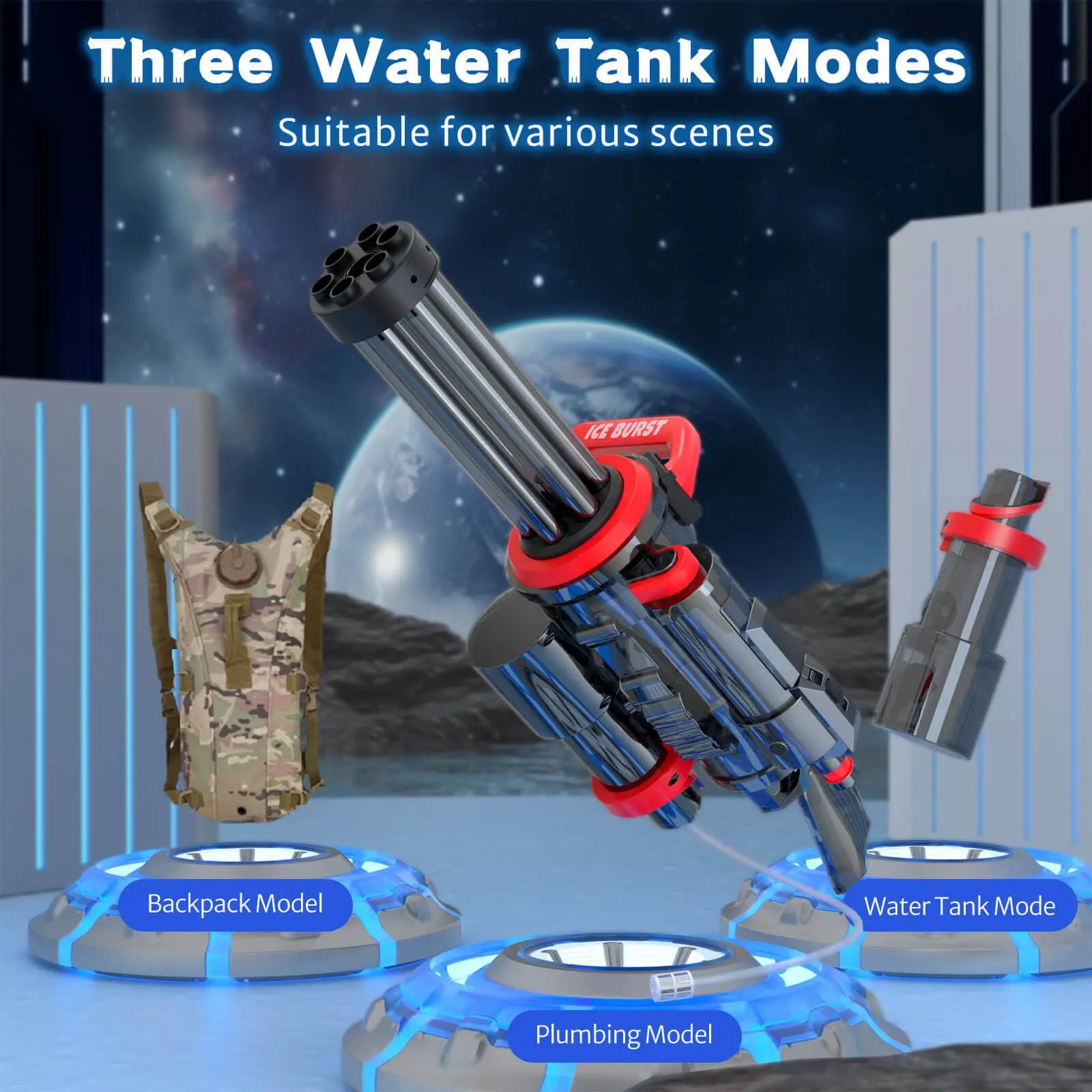 Hose Mode - This mode is suitable for use in pools, change the attached magazine, connect the hose and put the water filler into the pool, you can have endless ammo! Backpack Mode - We've equipped you with a 3000ml capacity backpack, you can carry it and suppress fire on anyone, no one has a higher magazine capacity than you!